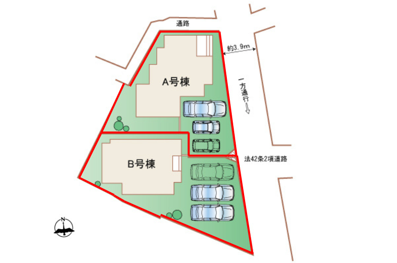 この地域で駐車3台可能です♪前面道路は一方通行なので車がすれ違うストレスがありません♪
