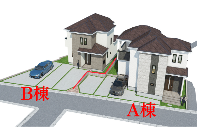 那覇市識名1丁目に全2棟完成間近♪この地域で駐車3台可能♪前面道路は一方通行なので車がすれ違うストレスがありません♪